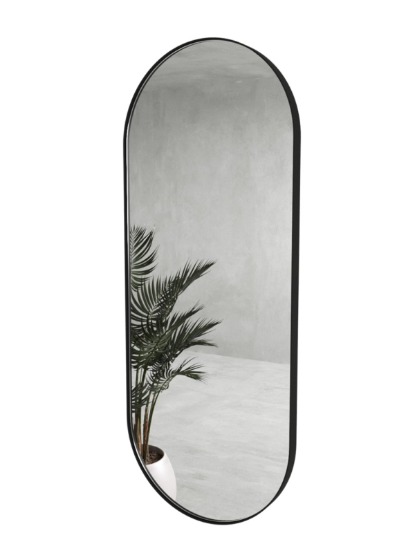 Дизайнерское овальное настенное зеркало Glass Memory Harmony в металлической раме черного цвета в Благовещенске