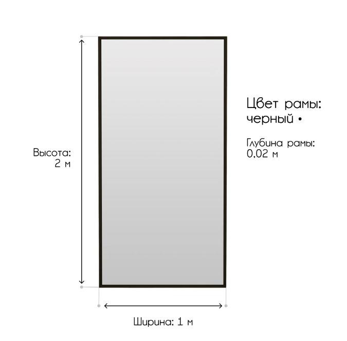 Зеркало «Parallax». Артикул GMZ-8-2-1/2/3 Большое зеркало в полный рост, которое с уверенностью можно назвать парадным. Простая прямоугольная форма без каких-либо излишеств позволяет использовать это зеркало в любых помещениях, оформленных в каких угодно стилях. Оно способно кардинально преображать пространство визуально расширяя его рамки и наполняя светом. Рама изготовлена из прочного металла, придаёт конструкции устойчивость и надёжность. Зеркальное полотно высокого качества, является продукцией известного бельгийского бренда AGC. Зеркало можно использовать как в напольном, так и настенном вариантах. Для крепежа на стену на обратной стороне рамы имеются крепёжные элементы.Характеристики:– габаритные размеры – 2000х1000х20 мм, металлический профиль – квадрат 20х20 мм;